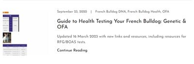 The following information has been adapted from the blog posted at Crowd Pleazer Frenchies: "Guide to Health Testing Your French Bulldog: Genetic & OFA"