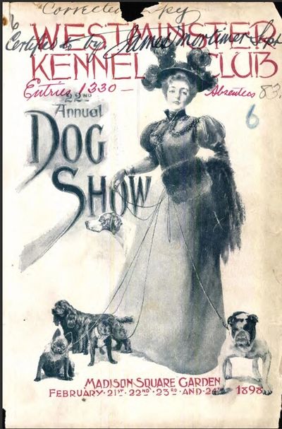 "Everyone who knew the history of the dogs to be judged was anxious to see how Miss Winthrop's decisions would compare with those made in previous shows and a few of the men present who believe a woman cannot have an unbiased opinion declared Miss Winthrop would not choose Gamin's Riquet to wear the blue". - Excerpt from the New York Times 12/3/1911